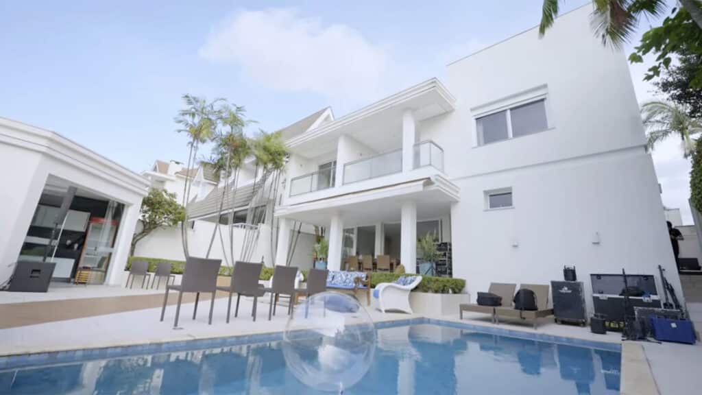 Contratado pelo SBT em dezembro, Manoel Gomes mostrou detalhes da mansão nova que está vivendo na Grande São Paulo e exibiu o lugar para Pedro Scooby em uma visita do surfista para o Podpah. A casa tem dois andares, piscina, salas de jantar, de estar e de cinema, suítes, além da área gourmet externa e garagem para três carros.