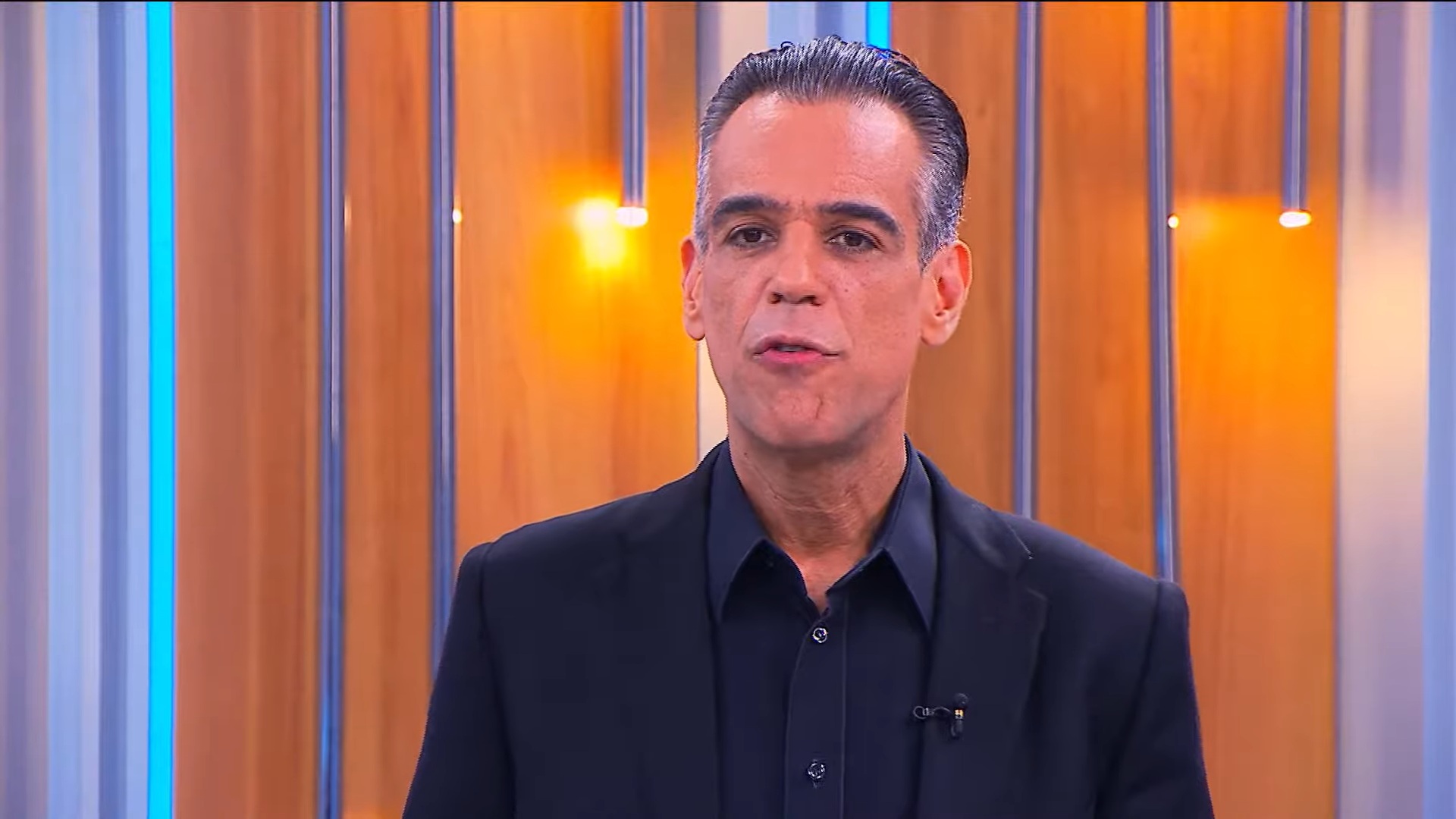 Foto do apresentador Marcelo Casagrande no estúdio do SBT News