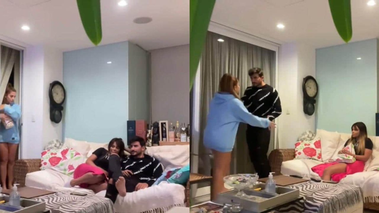“Eu decidi pegar pesado agora! A Gabi vai fingir que está dando em cima de mim”, contou ele. Gabily fingiu estar deitada no ombro do modelo enquanto a influenciadora entrou na sala do apartamento.