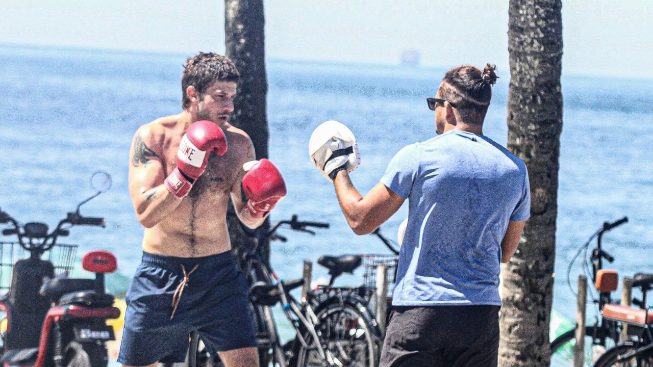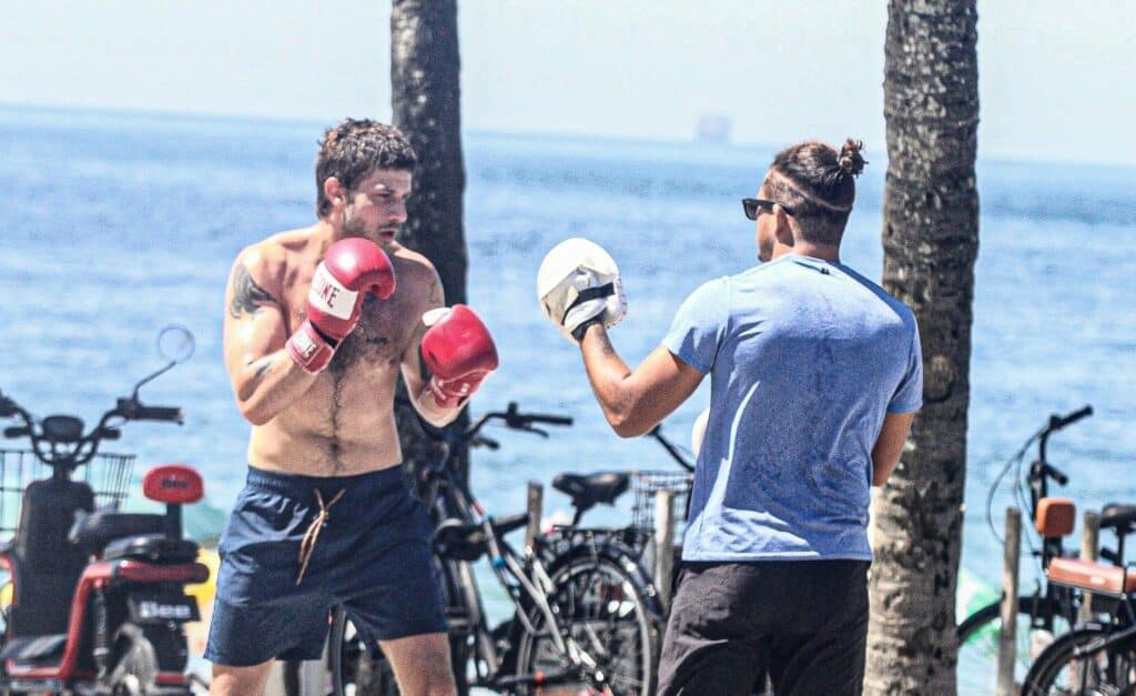 - Chay Suede foi flagrado fazendo um treino de boxe em plena praia de Ipanema;