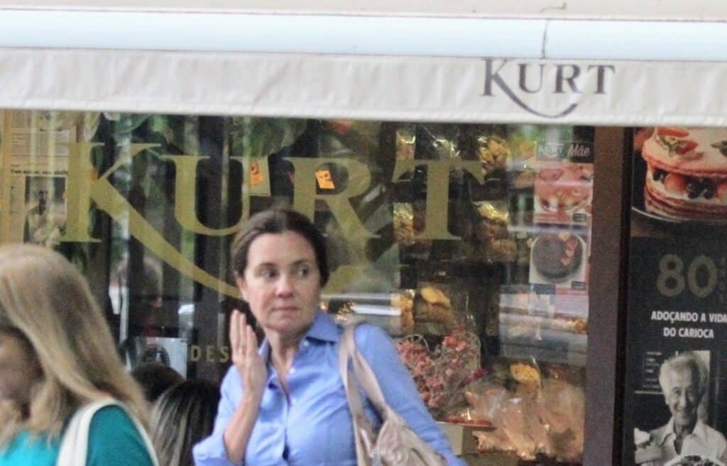 Eterna Carminha, de Avenida Brasil, Adriana Esteves aproveitou a chegada do final de semana para escolher algo diferente para comer. A atriz visitou a confeitaria premiada com mais de 75 anos de tradição, Kurt. A artista acenou para o paparazzo ao deixar o estabelecimento.