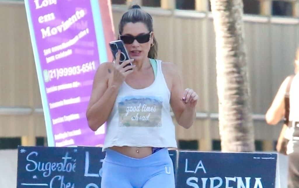 Longe das novelas desde o fim de Salve-se Quem Puder, Flávia Alessandra foi vista pelo Rio de Janeiro logo após sair da academia que fica localizada na Barra da Tijuca. A atriz estava falando no telefone e usava uma calça legging azul e um cropped branco.