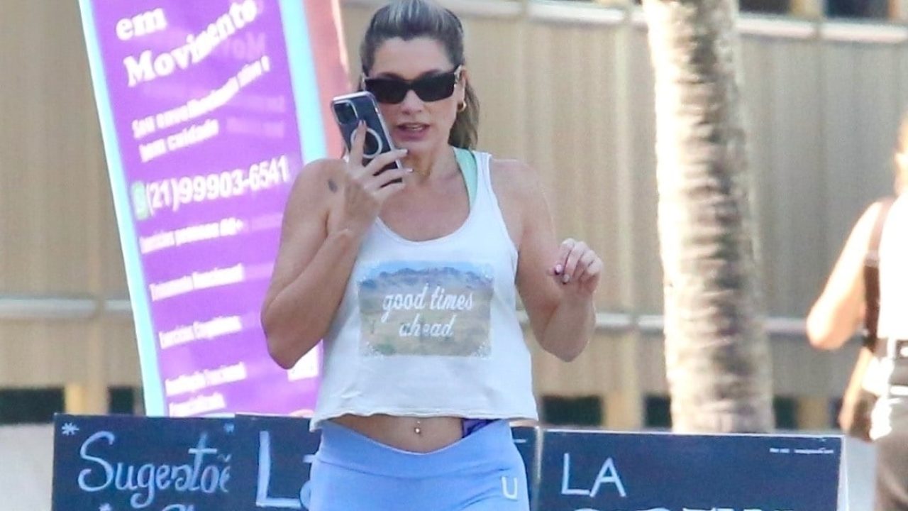 Longe das novelas, Flávia Alessandra mostra boa forma ao sair da academia