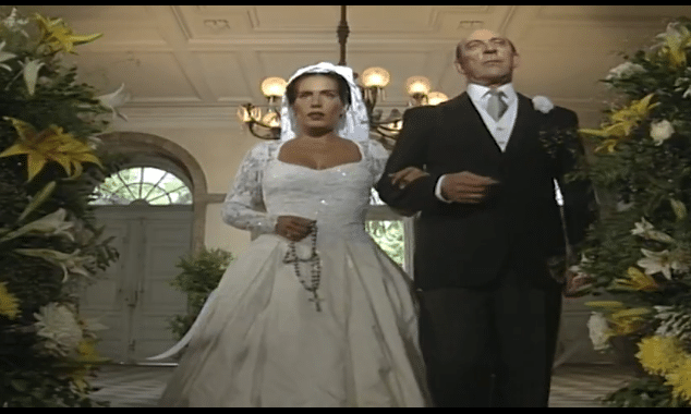 Raquel entra no seu casamento acompanhada de Virgílio em Mulheres de Areia