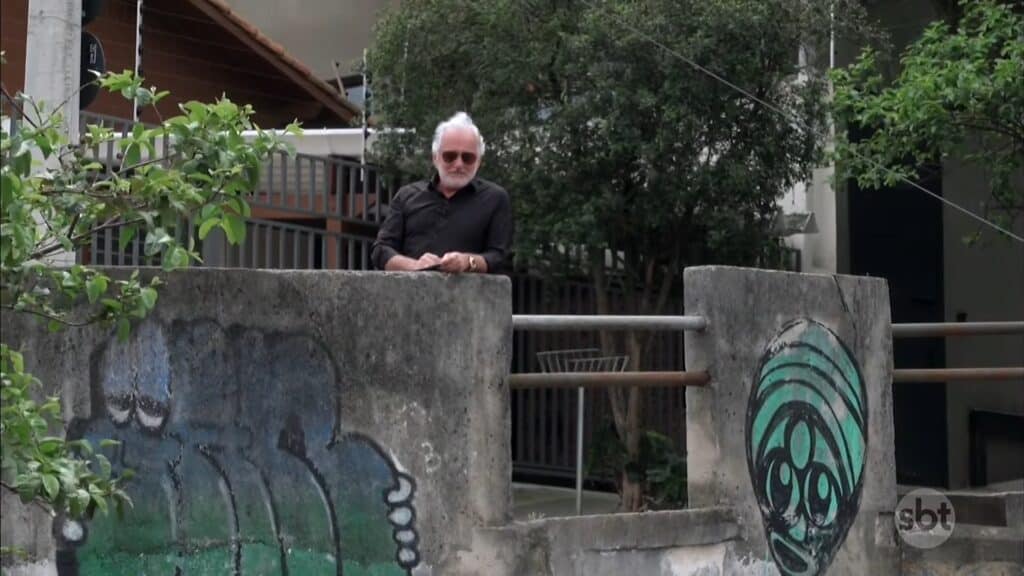 Foto do apresentador Otávio Mesquita em seu programa no SBT