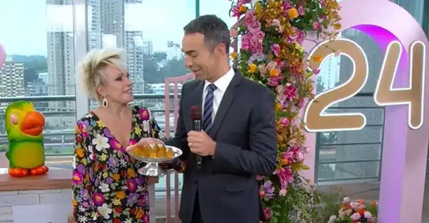 César Tralli prestou uma homenagem para Ana Maria Braga no aniversário de 24 anos do Mais Você. O comunicador afirmou que a apresentadora acabou conquistando o público na emissora carioca e destacou a trajetória da artista. No entanto, o que chamou a atenção foi que o jornalista pediu para levar a bandeja de coxinhas para a redação do Jornal Hoje.