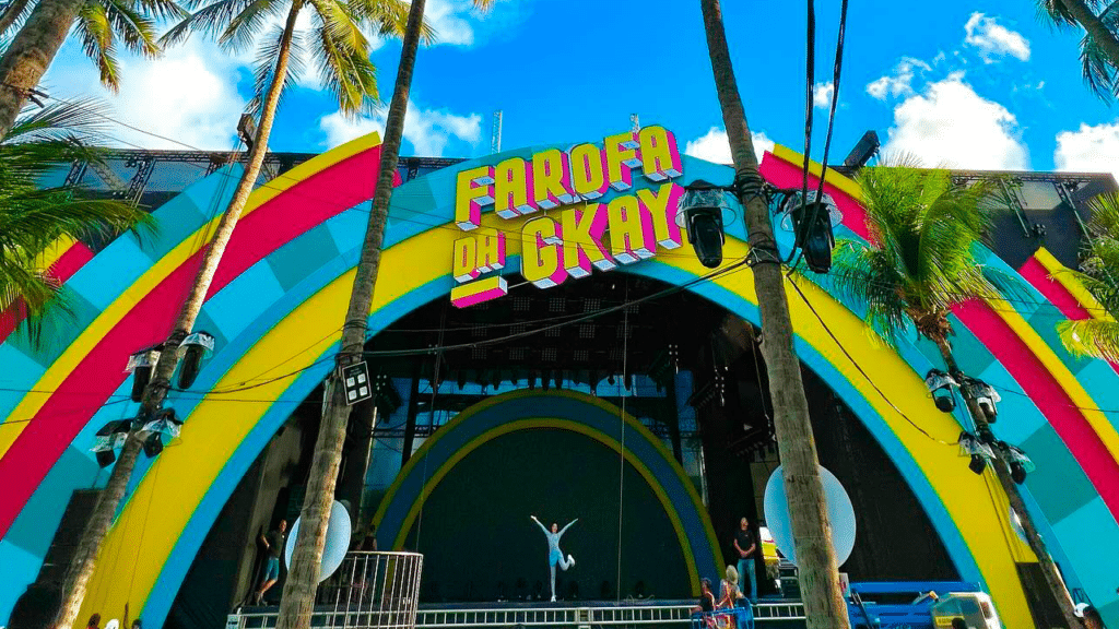 “Você é parte da família farofeira. Viu alguma coisa? Pode meter a colher, sim!”, diz um dos textos. “Por mais que ela dê mole, mas respeita a mina. Pra refrescar tua mente, que o não é não”, diz outro aviso em referência à música Posturado e Calmo, do cantor Léo Santana. A celebração vai acontecer até a próxima quarta-feira (6) e terá mais de 15 atrações em festas com 12 horas de duração. Um avião foi fretado para levar celebridades para a Farofa da GKay. Nomes como Gabi Martins, Flay, Pyong Lee e Fiuk mostraram o embarque para o Ceará.