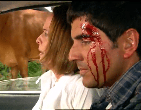 Lucas e Ana Luísa sofrem acidente e ele pede para a moça dirigir o carro em Paraíso Tropica