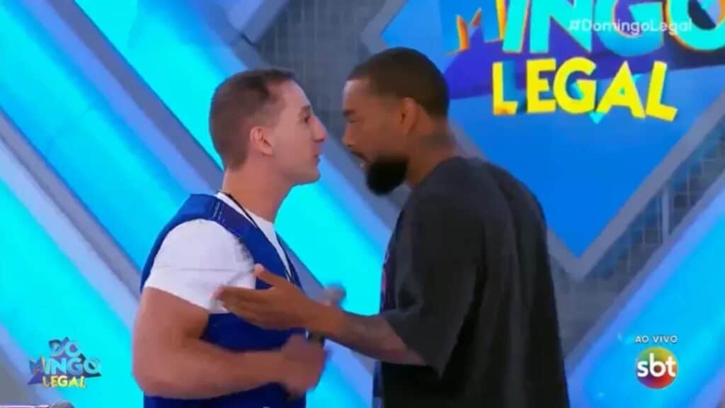 Celso Portiolli precisou intervir durante um climão que aconteceu no palco do Domingo Legal, do SBT, neste domingo (3). O apresentador se deparou com uma provocação entre Nego do Borel e Luiz Otavio Mesquita, filho do apresentador Otavio Mesquita. Os dois se estranharam ao vivo e o funkeiro chegou a empurrar o rival no palco da atração, precisando ser afastado.