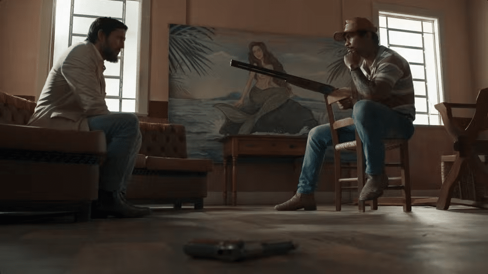 O enfezado chutará uma porta, mas levará um susto quando sentir o cano da carabina de Damião contra as suas costas. O capanga lhe avisará que se o coronel der mais um passo, não vai ter o segundo. Sem ter a mínima noção de quem o estava ameaçando, perguntará se a pessoa sabia com quem ele estava falando. O velho tentará aproveitar para pegar a sua arma.