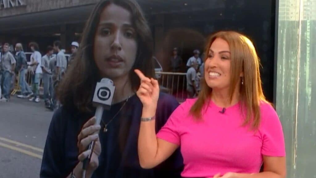 “O pessoal do nosso acervo, lógico, com uma agilidade enorme, acabou achando a reportagem da época. Vamos ver?”, sugeriu Rodrigo Bocardi. “Vamos, estou curiosa”, respondeu a repórter. “Que bom que você tá curiosa. Eu não gosto muito de ver o passado assim”, brincou o apresentador. “Tem que assumir, já foi”, rebateu a veterana.