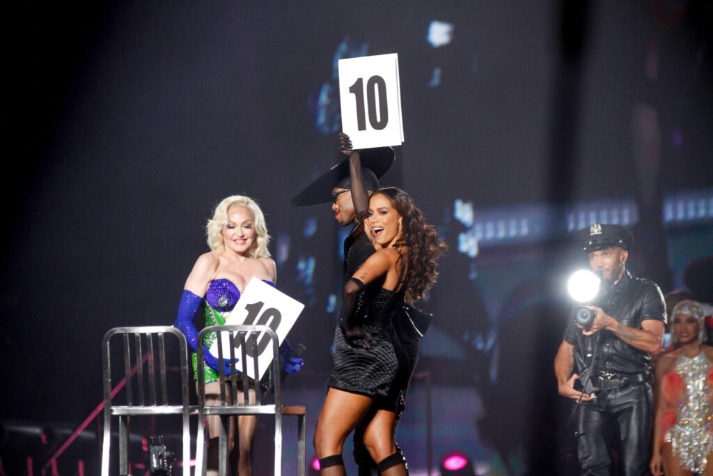 Anitta subiu ao palco durante a apresentação da música Vogue e as duas começaram a dar notas para os modelos que se apresentavam. Em um determinado momento, as artistas simularam uma cena em que ambas recebiam sexo oral dos bailarinos de Madonna. A brasileira deixou o palco depois do fim da canção.