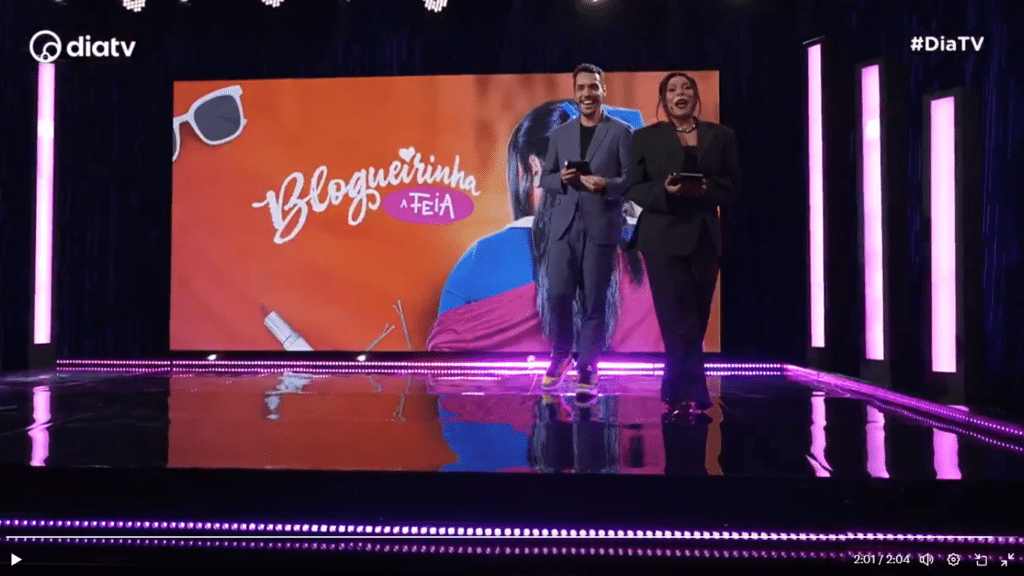 “Como é que vai me deixar feia? Me tornar feia tá sendo desafiador, o processo de caracterização”, brincou a youtuber, adiantando um pouco da trama, além de citar o momento em que sua personagem fica bonita. “Eu trouxe Blogueirinha, a Feia, porque sei que muita gente de casa iria se identificar”, ironizou a estrela.