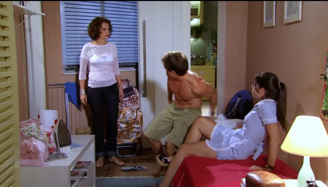 Lígia volta mais cedo do nordeste e acaba flagrando Alejandro com Brunessa em Cheias de Charme