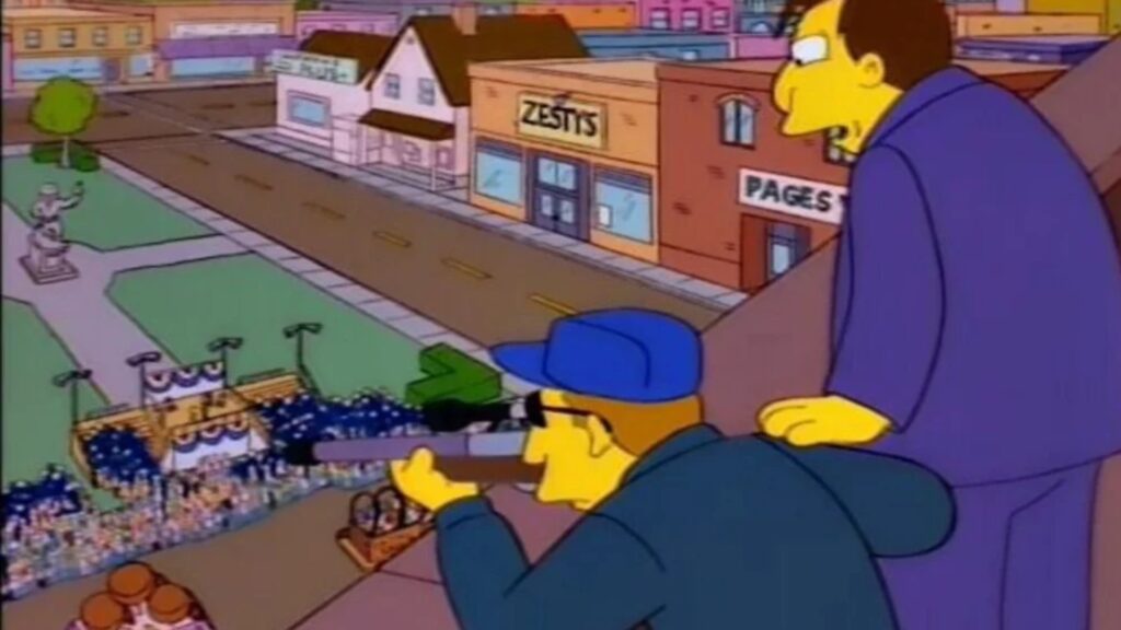 Uma das principais emissoras do Reino Unido, a Channel 4 derrubou a exibição de um episódio de Os Simpsons no último domingo (14). O capítulo mostraria um policial em cima de um telhado mirando em Lisa enquanto ela discursa no pódio de um comício. A situação abordada no desenho animado é bem semelhante ao que aconteceu com Donald Trump no sábado (13).