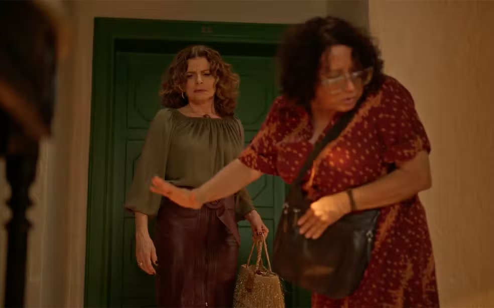 Deodora empurra Dona Castorina para pegar o anel de turmalina em No Rancho Fundo(Foto: Reprodução/Globo)