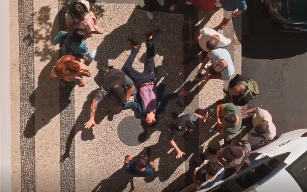 O homem conseguirá chegar na rua e tentará pegar um táxi. Jaques ligará nesse momento e estranhará o barulho. Dois homens estarão assaltando os carros no sinal. Sem entender o que está acontecendo, ele olhará para os bandidos. Um deles virará para trás e atirará na perna do golpista. O pilantra cairá no chão após ser baleado e com a queda baterá a cabeça.