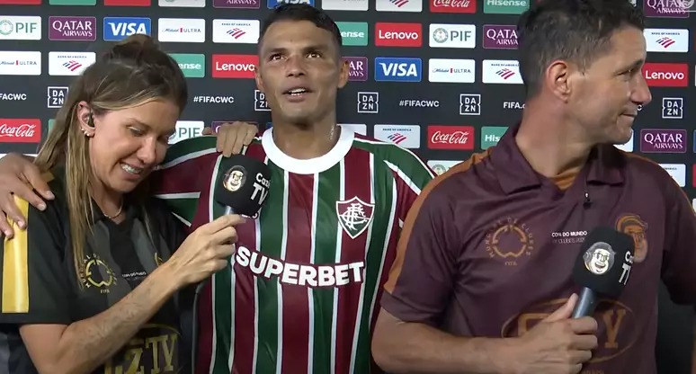 A classificação do Fluminense para a semifinal do Mundial de Clubes rendeu uma cena emocionante ao vivo na Cazé TV, nesta sexta-feira (4). Após a vitória por 2 a 1 sobre o Al-Hilal, a repórter Bárbara Coelho chorou durante a entrevista com o zagueiro Thiago Silva, que também se comoveu ao comentar a fase vivida pelo clube e as dificuldades familiares.