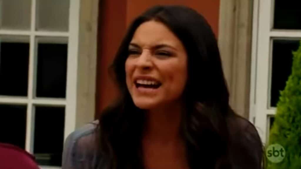 “O que? De onde você tirou isso?”, pergunta Maricruz. “Diz aqui que você matou ele por ciúmes por saber que Afonso iria se casar com outra mulher. Essa mulher era eu! Ele ia casar comigo! Quem matou ele foi você Maria Alessandra Mendonça ou melhor, Maricruz Olivares”, aponta a menina. “Que pessoa horrorosa é você”, diz ela para Liz.