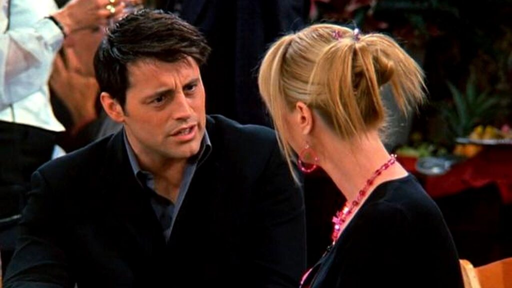 A artista revisitou o episódio The One in Massapequa, da oitava temporada, e destacou uma sequência específica que chamou sua atenção. Na cena, Joey reclama de uma festa e afirma ter quase escorregado em algo que acreditava ser “um catarro gigante”, o que gerou a reação da atriz ao relembrar o contexto.