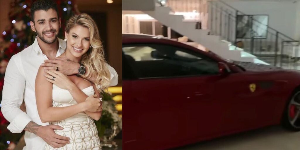 Andressa Suita decidiu compartilhar em suas redes sociais alguns detalhes da nova decoração da sua casa. A influenciadora mostrou que o cantor sertanejo e ex-marido, Gusttavo Lima, guardou na sala de casa sua nova aquisição, uma Ferrari FF que custa cerca de R$ 2,8 milhões no Brasil, segundo o UOL. “O que acontece com a casa quando o casal se separa e o pai das crianças continua morando. Que bom, temos um carro no meio da sala”, brincou ela ao mostrar o carro vermelho.