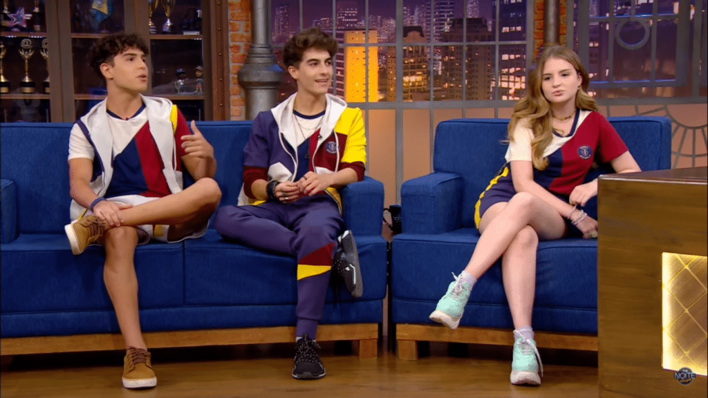 Lucas, que interpreta o personagem Eric, falou sobre a rivalidade que tem com o personagem de Igor Jansen, do qual é amigo pessoal na vida real. “Isso é uma das coisas mais difíceis de fazer esse personagem. A gente tem que se odiar e, de vez em quando, a amizade fala mais alto”, disse. Sophia Valverde ainda foi questionada sobre já ter levado algum “fora” de um crush e contou sobre a sua decepção amorosa. “Um único fora. E, inclusive, o Igor sabe desse fora. O Igor é meu psicólogo”, revelou a atriz.