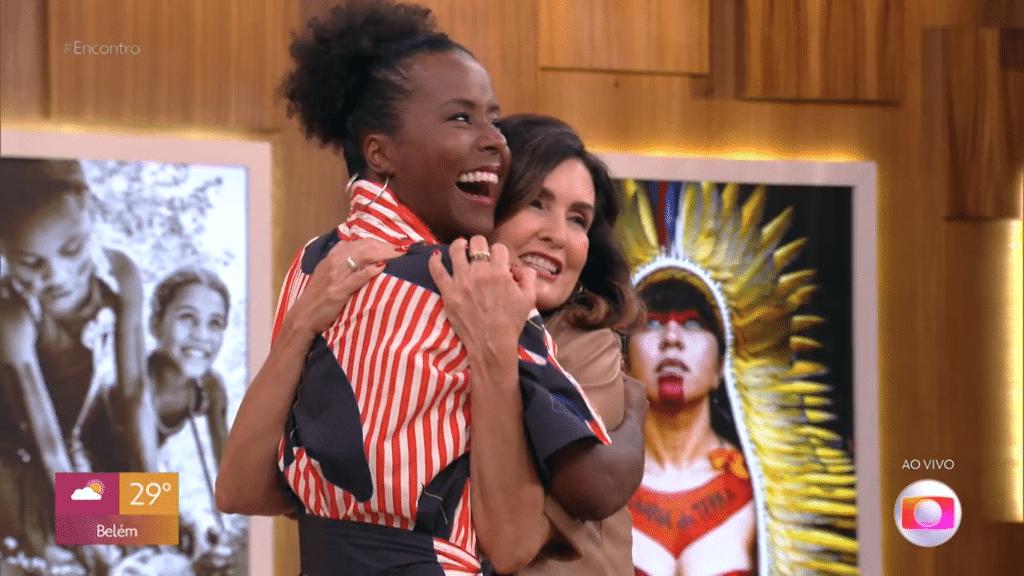 Maju Coutinho esteve no Encontro para falar sobre sua estreia no comando da transmissão dos Desfiles das Escolas de Samba do Rio de Janeiro. Durante a atração matinal da Globo, Fátima Bernardes aproveitou “passar o bastão” para colega que assumiu o seu lugar, além de presenteá-la com um par de chinelos, para ajudar durante a maratona carnavalesca. “Ninguém ia te dar essa dica de levar um chinelinho para ir ao banheiro. Só quem já apresentou sabe. Tira a sandália correndo, calça o chinelinho e vai”, disse Fátima durante o programa.