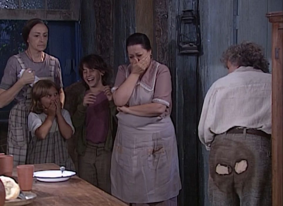 Calixto irá se virar na frente de todos da fazenda e fará todos rirem com a bunda queimada pelo fogo. Petruchio ficará inconformado com a situação. “Arriégua… Mas é mesmo verdade”, dirá o fazendeiro. “Calixto, você poderia pelo menos ter trocado de calça”, dirá o homem. “A minha outra calça tava lavando e eu fui pego sem ação”, anunciará o homem, chorando.