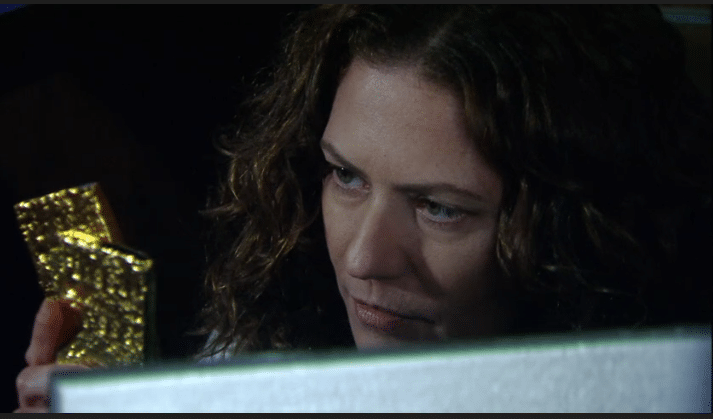 A moça sairá da sala e trancará. Flora entrará na sala ao lado e pela janela conseguirá passar de uma sala para outra. Ela conseguirá pegar a chave do cofre, abrirá e encontrará as duas barras de ouro. Pegará um envelope sobre a mesa e guardará a fortuna. Sairá pela janela novamente e aparecerá na homenagem como se nada tivesse acontecido.