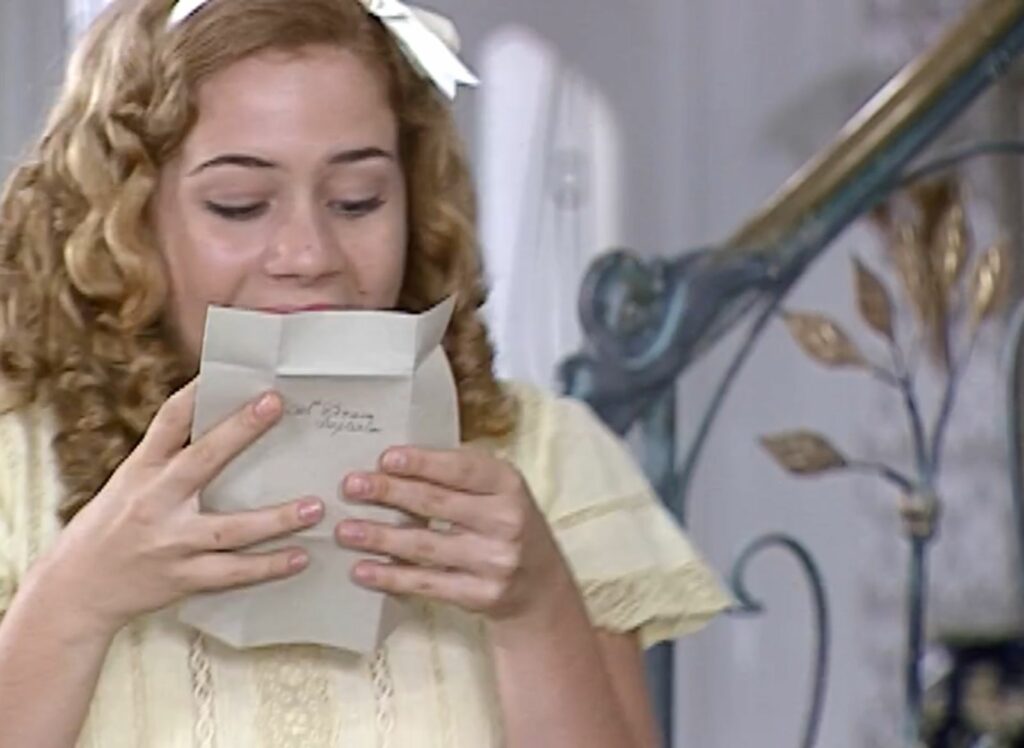 “Ela quer que eu vá e você também. Vai ser lá na fazenda”, relatará. “Então, não irei. Não quero ver o focinho do Petruchio”, pontuará a mulher. Bianca ficará chateada com a afirmação da irmã e lamentará. “Catarina, é o casamento da Mimosa”, dirá. “Você deve ir, ela gosta muito de você. É uma pena que eu não tenha nem tempo de mandar um presente”, revelará. “Mande depois o presente. Eu vou me arrumar”, afirmará a menina.