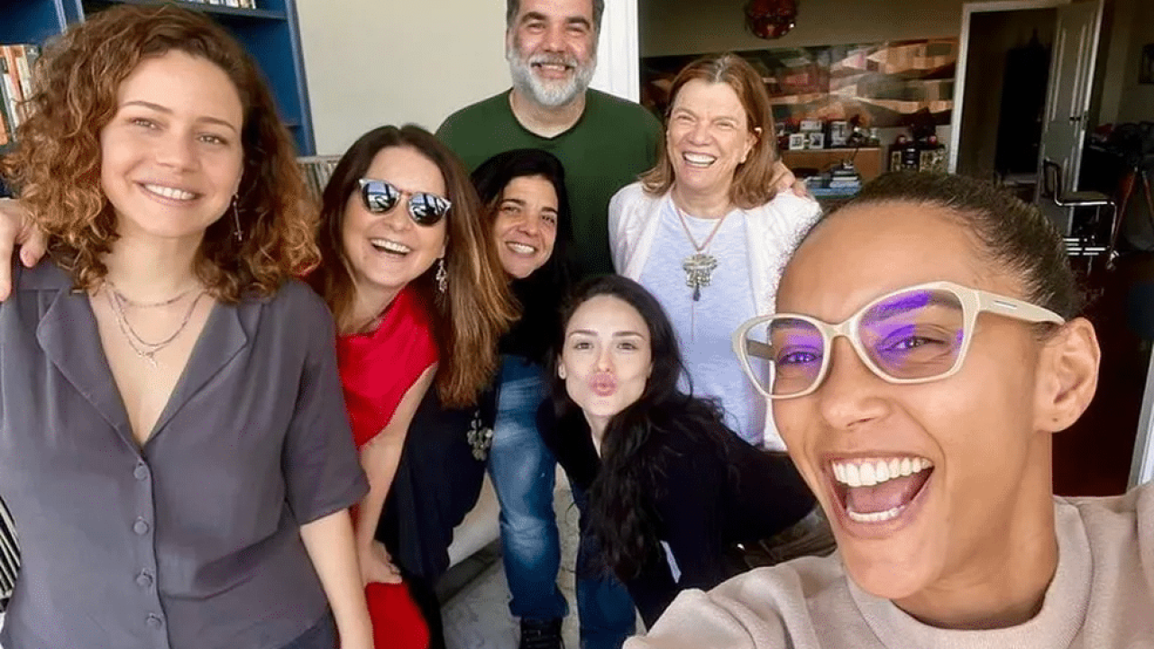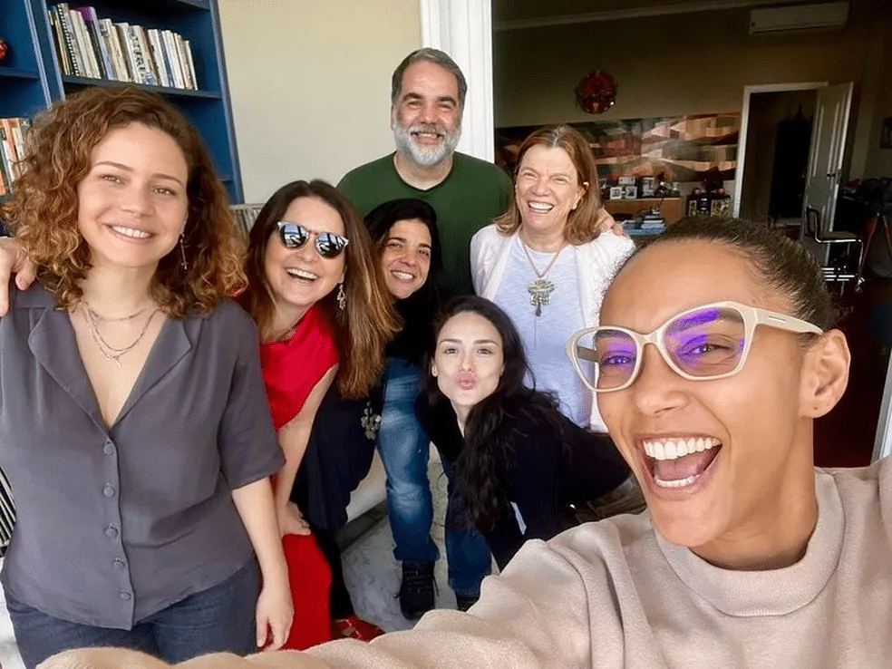 “A gente segue no desejo e no trabalho para acontecer nosso filme com essas personagens que a gente ama. Nessa foto está parte do elenco, diretora e autores… Meu coração quentinho e querendo muito reviver essa história com vocês!”, escreveu Taís Araujo. Cheia de Charmes acompanha Maria da Penha, Maria do Rosário e Maria Aparecida, três empregadas domésticas que por um golpe do destino acabam se encontrando e tornando grandes amigas.
