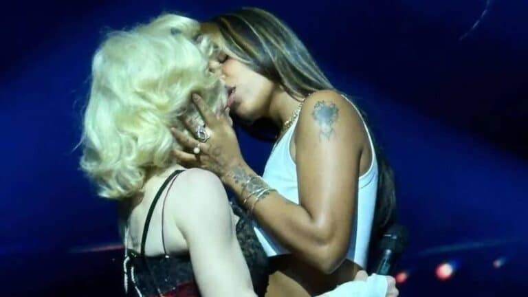 Madonna se empolga em show e dá beijo de língua em cantora