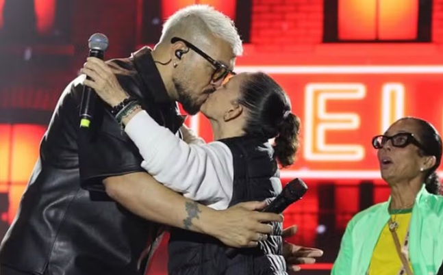 Prefeita beija Belo na boca durante show no interior da Bahia